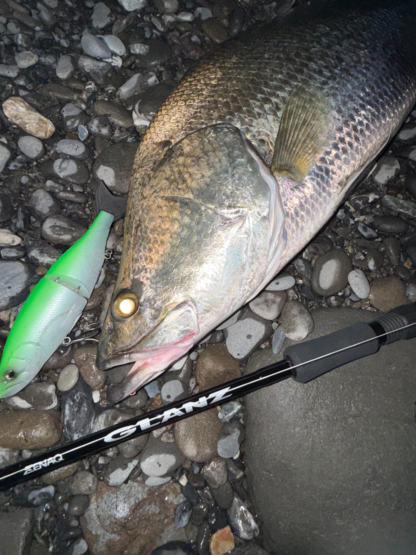 ようやく訪れたワンチャンスで確実に、魚とルアーの重みをロッド全体で受け止め、安定してランディングへと導く。